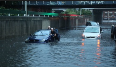 Bovenstaand plaatje is niet het gevolg van een Amerikaanse Hurricane, maar het is ‘gewoon’ een viaduct in Den Haag, enkele maanden geleden ondergelopen na een wel erg forse regenbui.